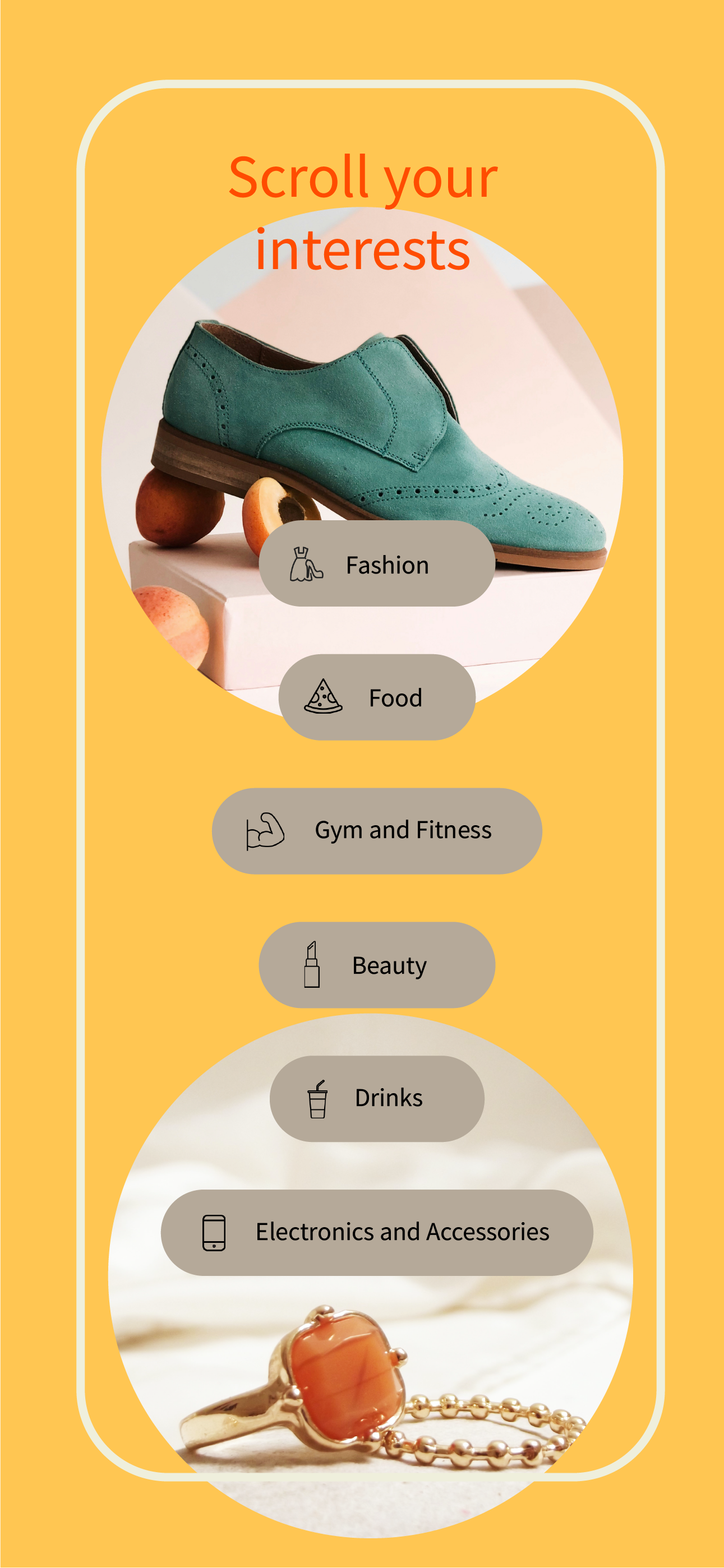 Users explore curated Showrooms, follow ambassadors and brands, browse category-specific VibeReels, and receive personalized recommendations based on selected interests like beauty, fashion, fitness, or sports.